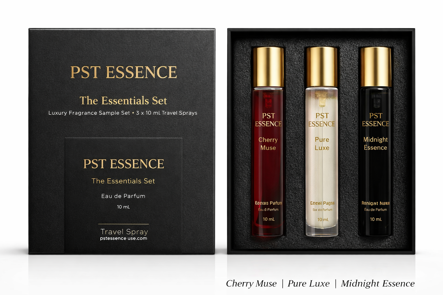 A curated introduction to PST Essence. Three signature scents designed to embody elegance, emotion, and timeless luxury.